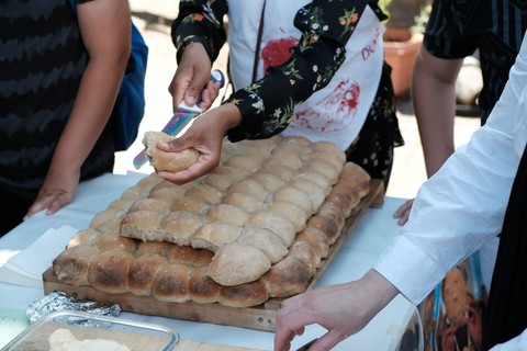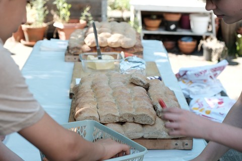 Buurthuis de Schakel ligt weggedoken tussen de rijtjeshuizen van Nieuw-West. Steegje door, hoekje om, daar is de voordeur. In de hal: vuur! De zelfgebouwde houtoven van Bakkerij de Eenvoud staat al te vlammen. Stoker Peter houdt het in de gaten, zodat straks de ovenstenen precies heet genoeg zijn voor de broodjes van groep zes. De kinderen stommelen naar binnen onder aanvoering van meester Matisse. Bakker Yannis heet hen welkom en ze zoeken hun plek aan de lange tafel. ‘Even stilte!’ roept bakker Peik. ‘We gaan vier soorten brood bakken: Turks, Marokkaans, pita en desembrood. Desem is een soort gist, weten jullie nog dat we daar vorige keer mee hebben geëxperimenteerd? Net als gist laat desem het brood rijzen, maar je maakt het zelf en het brood smaakt een beetje anders.’