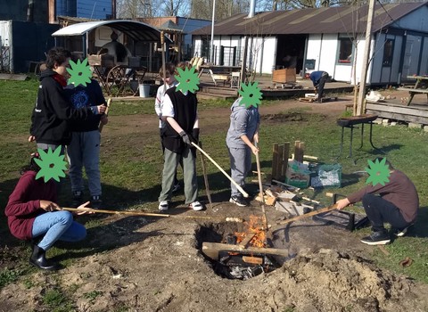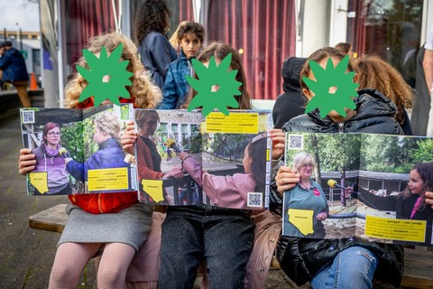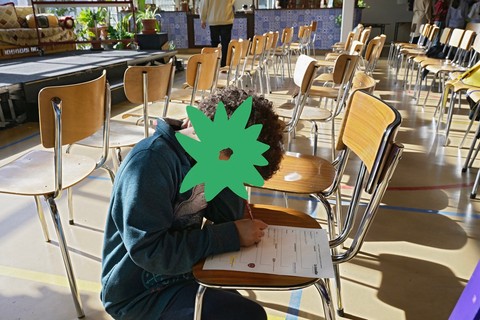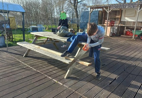 In het splinternieuwe speeltuintje wordt ondertussen vol overgave uitgeraasd. Nicolas maakt een salto achterover en Aya verovert het favoriete speeltoestel met haar vervaarlijke wapen: een stem als een misthoorn. Laila babbelt over de speen van een babynichtje, haar eigen astma en het plan om longarts te worden. ‘Ik denk dat veel kinderen thuis druk voelen richting hoger onderwijs,’ zegt Matisse later. ‘In deze lessen ervaren ze dat handwerk ook mooi kan zijn. Ze moeten veel samendoen en leren nieuw gedrag. Er is vrijheid, en de lesstof is toegankelijk. De groep wordt er ontspannen van.’