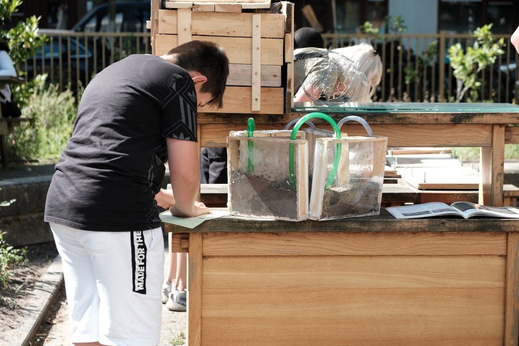 In het splinternieuwe speeltuintje wordt ondertussen vol overgave uitgeraasd. Nicolas maakt een salto achterover en Aya verovert het favoriete speeltoestel met haar vervaarlijke wapen: een stem als een misthoorn. Laila babbelt over de speen van een babynichtje, haar eigen astma en het plan om longarts te worden. ‘Ik denk dat veel kinderen thuis druk voelen richting hoger onderwijs,’ zegt Matisse later. ‘In deze lessen ervaren ze dat handwerk ook mooi kan zijn. Ze moeten veel samendoen en leren nieuw gedrag. Er is vrijheid, en de lesstof is toegankelijk. De groep wordt er ontspannen van.’