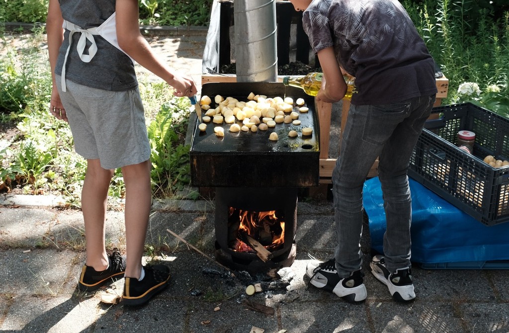 ‘Het buurthuis is eigendom van Rochdale, de woningbouwvereniging,’ vertelt Peik, ‘en voorheen alleen in gebruik bij ouderen. Toen wij als Bakkerij De Eenvoud zochten naar een plek in West om een oven te bouwen en met de buurt te bakken, was Rochdale meteen enthousiast. We bakken wekelijks met wijkbewoners, en nu dus ook met Samen leren in de wijk. Kinderen en ouders krijgen een rijker perspectief door de kennismaking met allerlei wijkvoorzieningen. Ze doen een stap naar buiten, leren nieuwe technieken, nieuwe termen.’